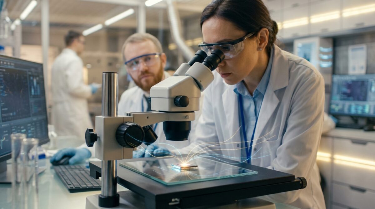 - Photonic–electronic hybrids: chips that convert light pulses into current using geometry-enhanced absorption.